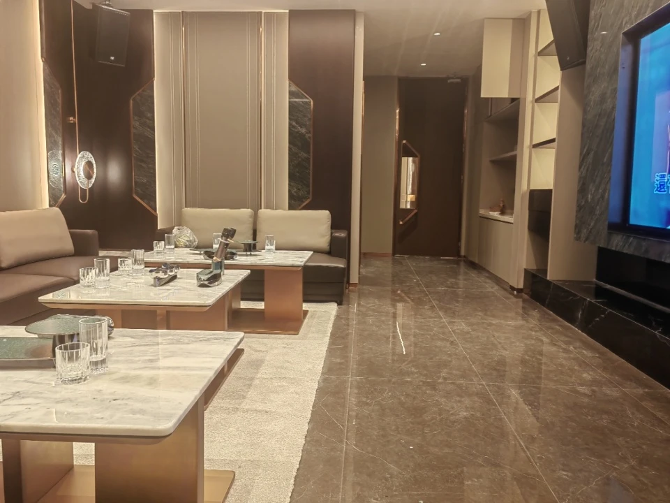 挑高穹顶与流线灯带交织,真皮沙发环抱大理石桌面,举手投足皆是商务气场。包厢内置独立小吧台,高端饮品随手可得,商务洽谈与私人欢聚自如切换。