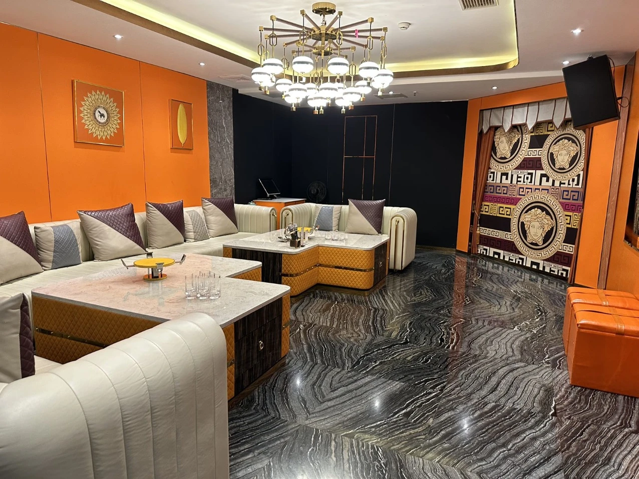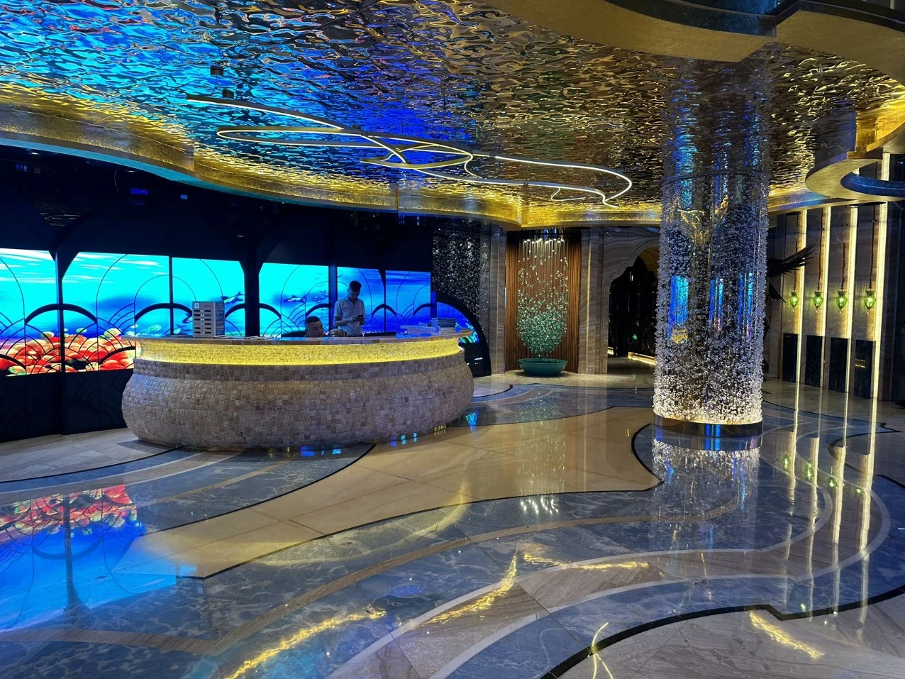 推开精雕铜制大门,映入眼帘的是挑高十米的璀璨水晶吊灯,光影在深色大理石地面流转。每一个转角都经过声学处理,歌声在空间中自然扩散,既震撼又温润。无论是圆桌商务洽谈,还是沙发区轻松欢唱,都能找到最舒适的姿态。