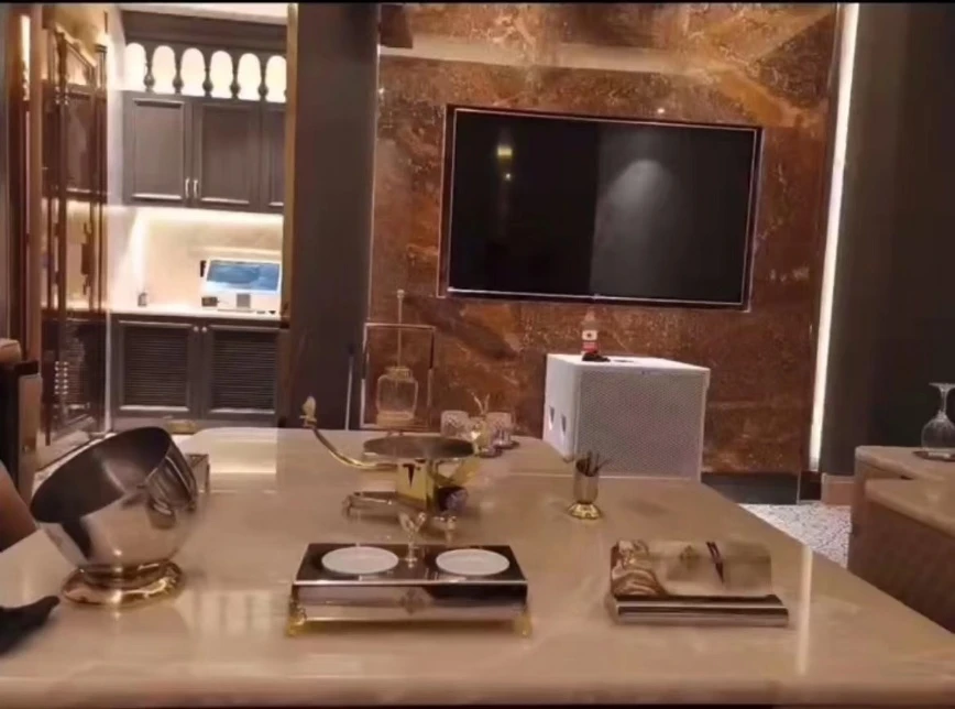 步入中庭式大包,挑高穹顶镶嵌渐变灯带,随着音乐律动呈现出梦幻星河效果。中央环形沙发可容纳多人围坐,方便面对面沟通;侧边小型吧台提供自助酒水区,避免频繁进出打断氛围。隔音墙体厚度经过专业调校,即使隔壁高唱,也不影响内部商务对话。