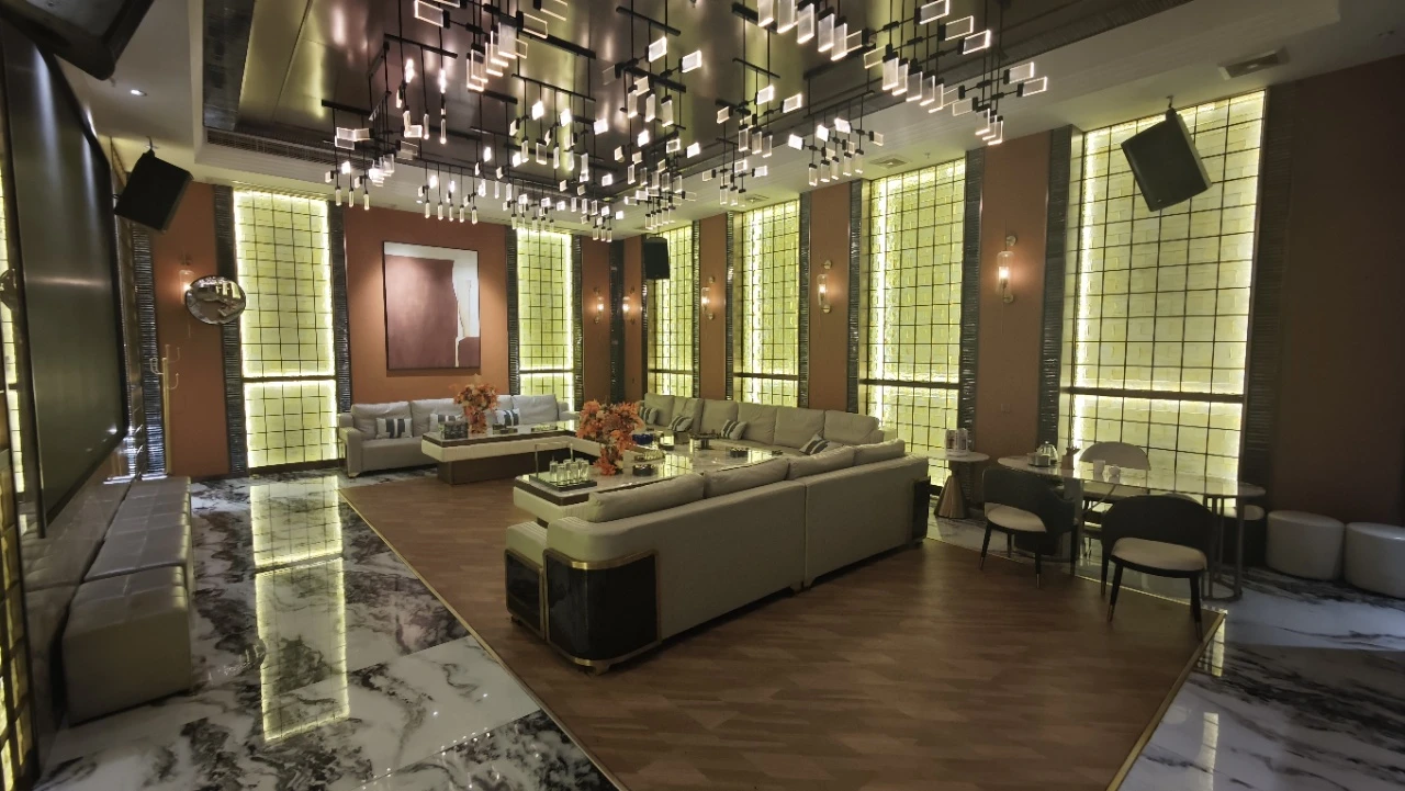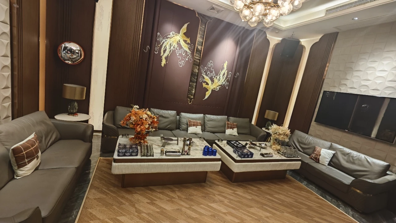 低调奢华的接待大厅以深棕木饰与暖金灯光营造沉稳氛围。宾客在此稍作停留,专属经理上前迎接,800起女孩名单即刻呈现,让商务KTV之夜从第一秒就充满期待。