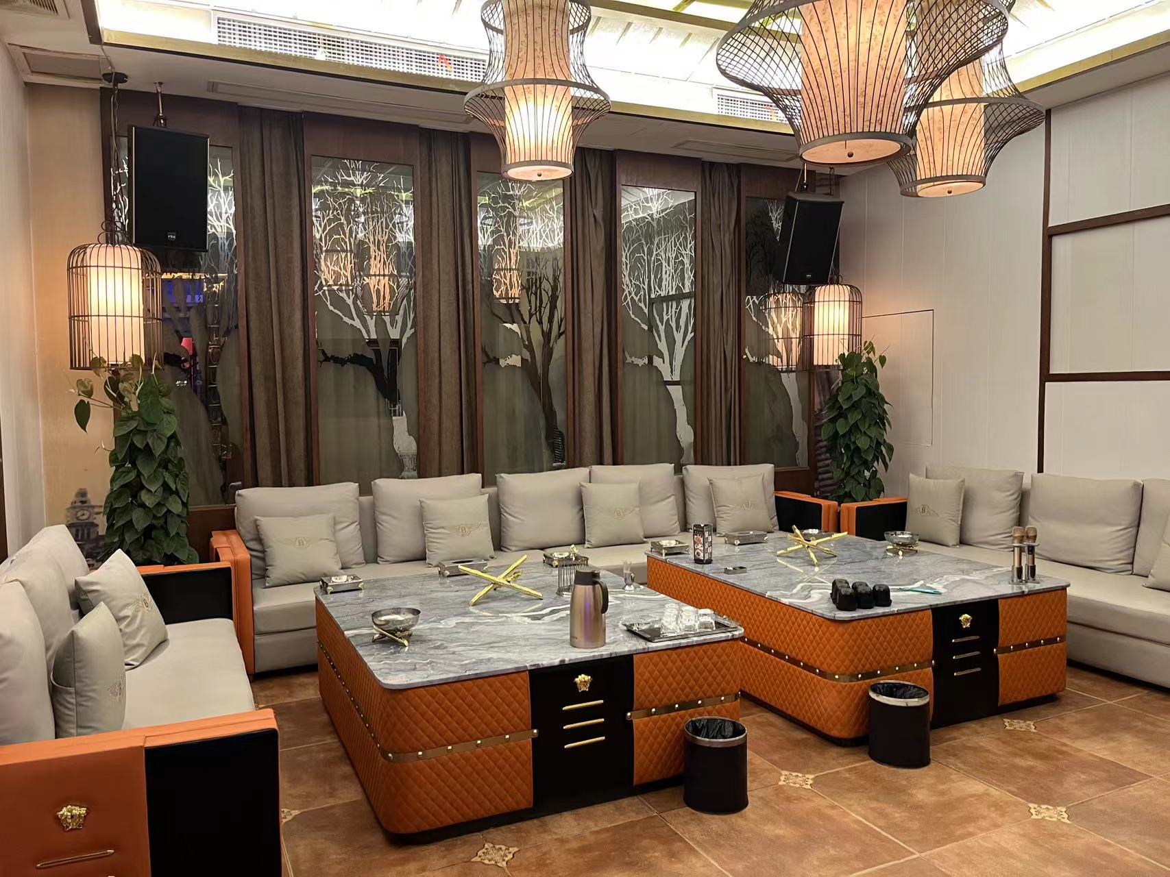 这张照片是万宝龙大包厢,空间大,灯闪得舒服,坐十几位不挤。想订就拨电话或加微信,一句话搞定。
