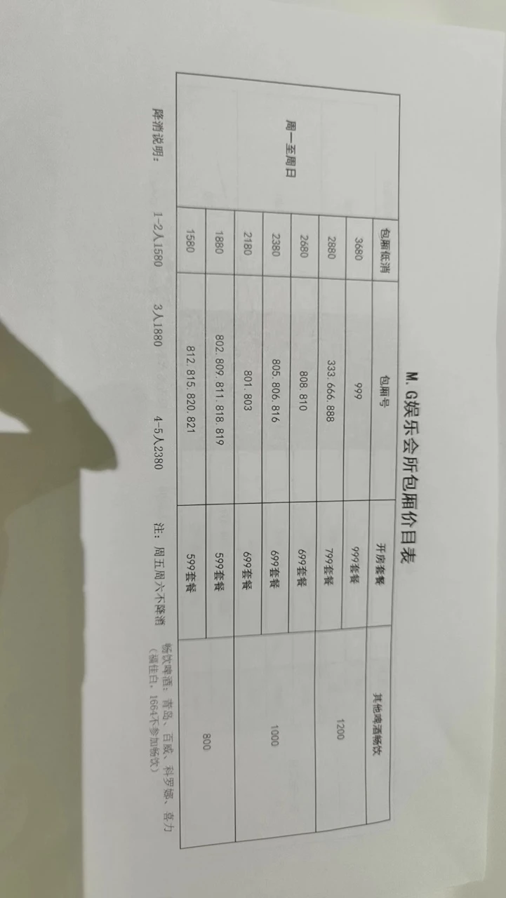 - 包厢酒水低消起步即可畅饮雪花,百威科罗娜加价随心配