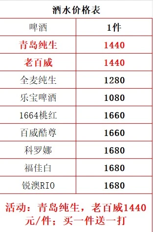 酒水:1440。 青岛➕老百威