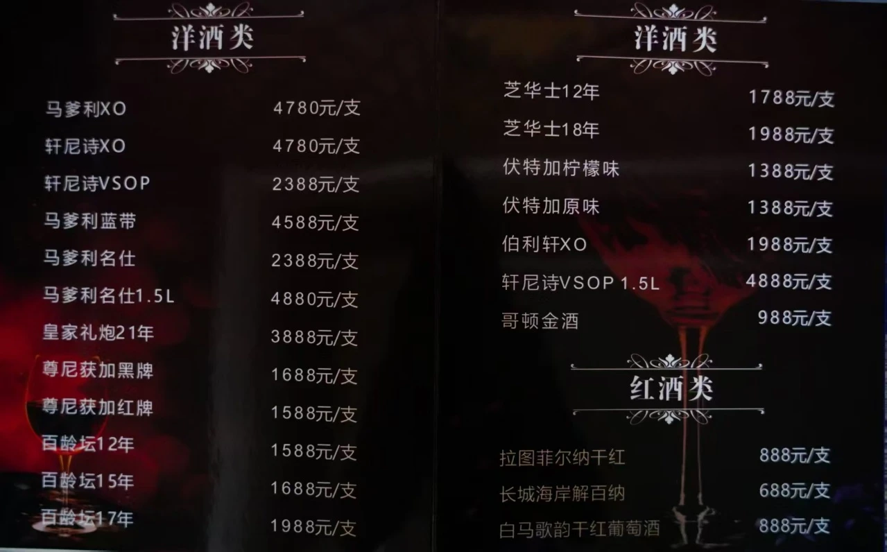 - 少爷服务费:协助点单、调酒、场景切换,全程贴心